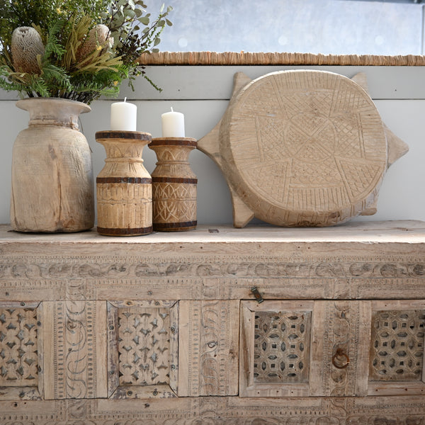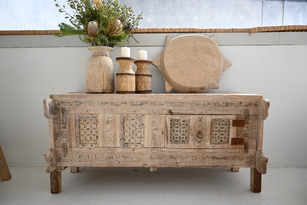 This Damchiya is an original old, one off piece. Sourced from North West India, they are RARE!, and becoming increasingly hard to come by. This Damchiya, has been hand carved in beautiful detail, from teak that has been stripped of...