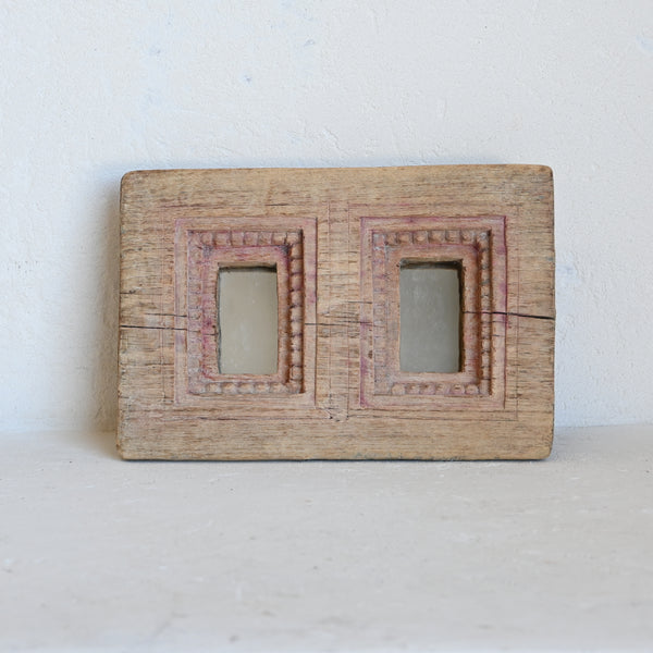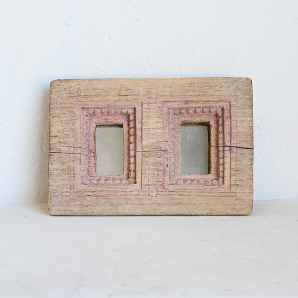 These mini temple mirrors were originally alters for offerings, carved from teak, and bleached to achieve a beautiful light patina, They look great displayed on a shelf or make a statement grouped together on a wall. Dimensions: 16.5 cm high...