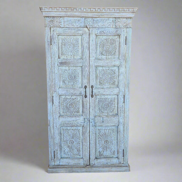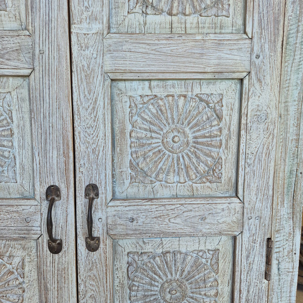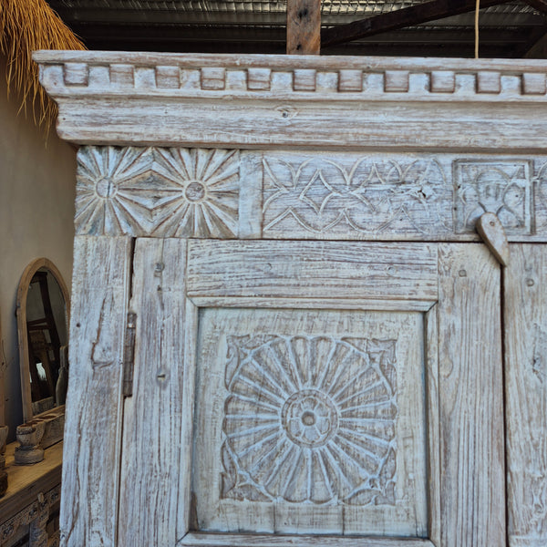 This is an original old vintage Almirah cabinet, carved in intricate detail from hardwood, sourced from North west India. Almirah cabinetsĀ are a staple in traditional Indian households, used to store salt and grain in the kitchen, or saris, quilts and...