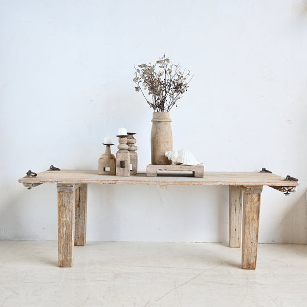Introduce rustic charm into your living space with our Indian Coffee Table! Handcrafted in India from recycled teak timber, this table was originally a swinging bench ( you will notice the original rings on the top, that were once used...