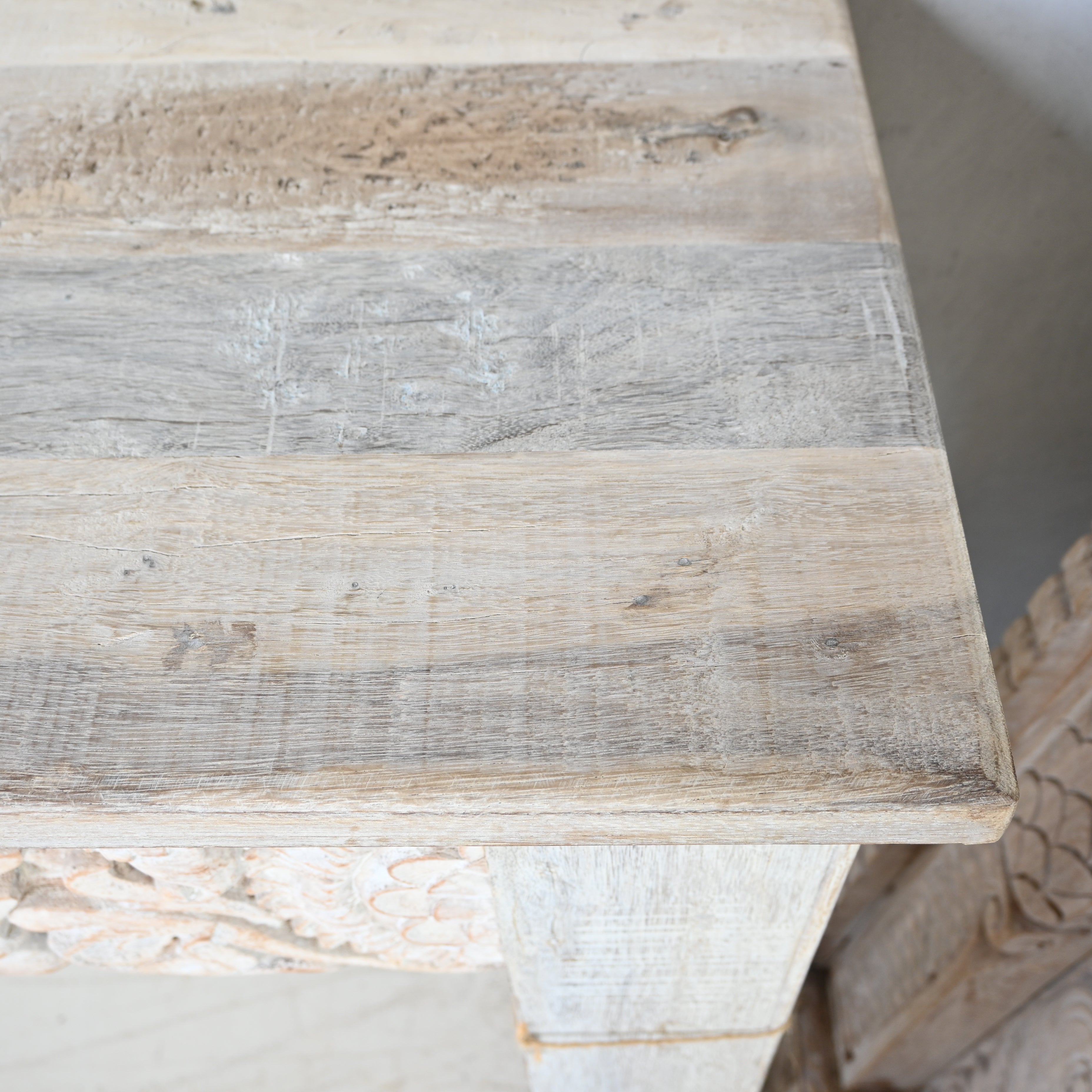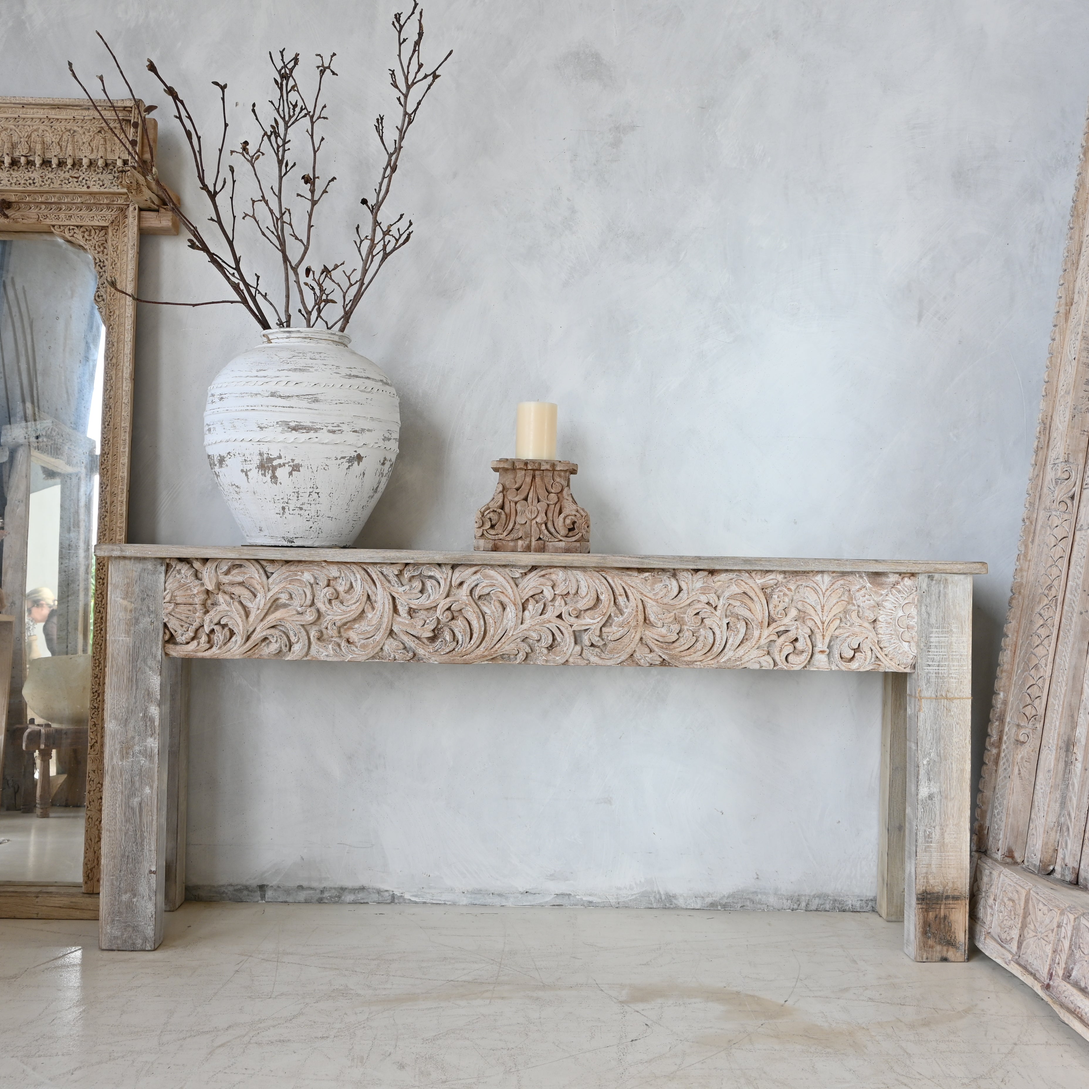 This one-of-a-kind console features an original hand-carved panel paired with reclaimed and recycled timber, creating a truly unique statement piece. Each element has been thoughtfully restored and repurposed to celebrate sustainable craftsmanship. Perfect for making an impact in your entryway, hallway, living room, or as a distinctive bespoke vanity, this console brings character and history into your home while supporting responsible design practices.