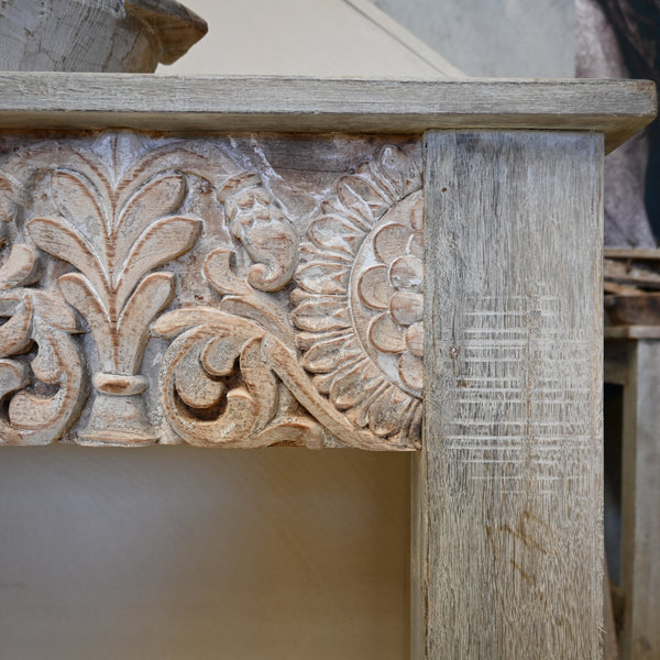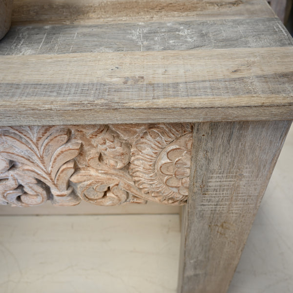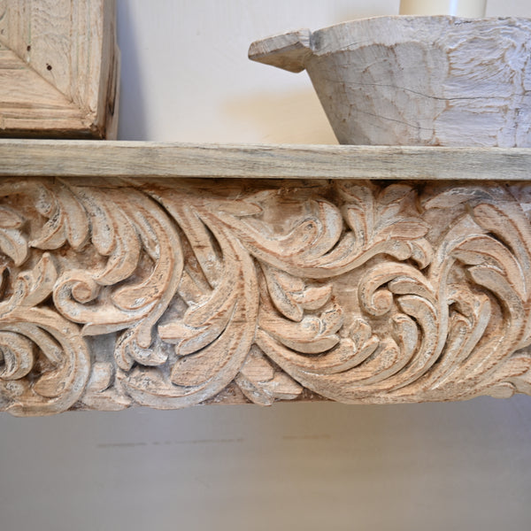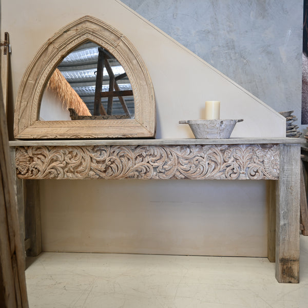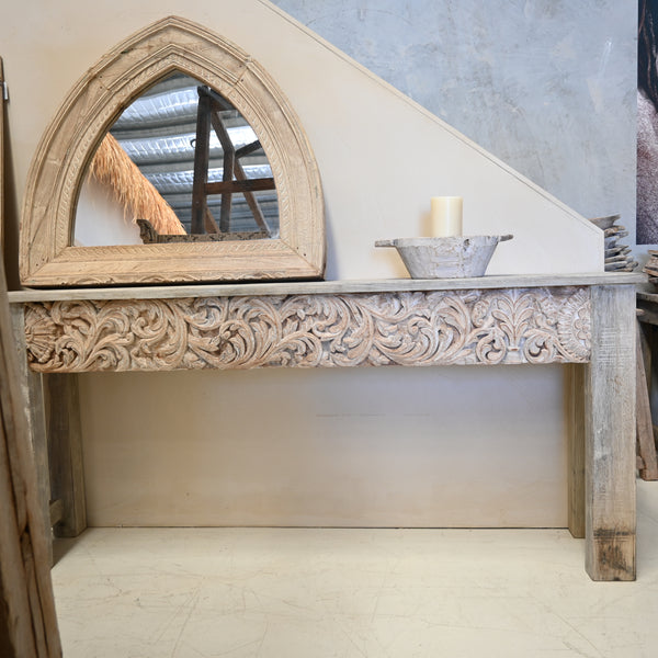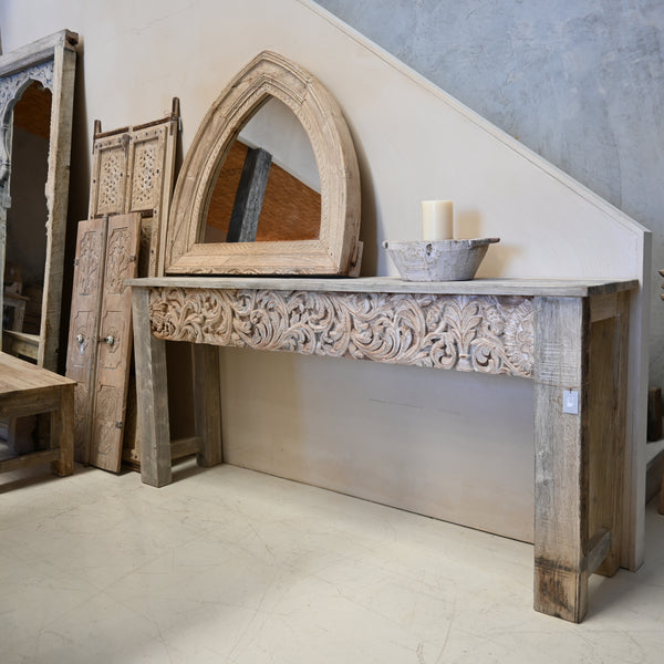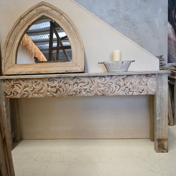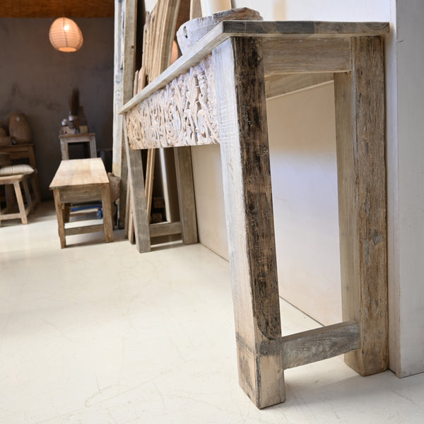 This one of a kind console is made with an original carved panel. We use recycled, reclaimed timber to build the top and sides around the original piece to repurpose it as a console to be enjoyed for many years...