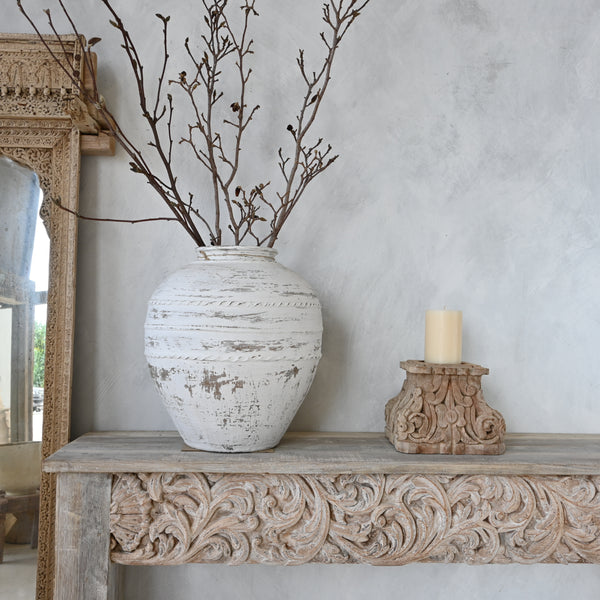 This one-of-a-kind console features an original hand-carved panel paired with reclaimed and recycled timber, creating a truly unique statement piece. Each element has been thoughtfully restored and repurposed to celebrate sustainable craftsmanship. Perfect for making an impact in your entryway,...