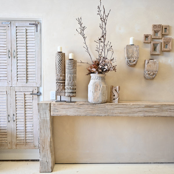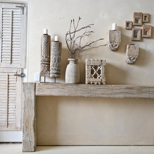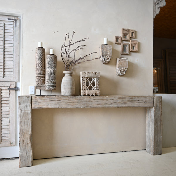 Crafted from a reclaimed ceiling beam, this vintage Indian console adds a touch of history to any space. Made with expertise and attention to detail, its simple design seamlessly combines beauty and sustainability. Elevate your home decor with this one-of-a-kind...