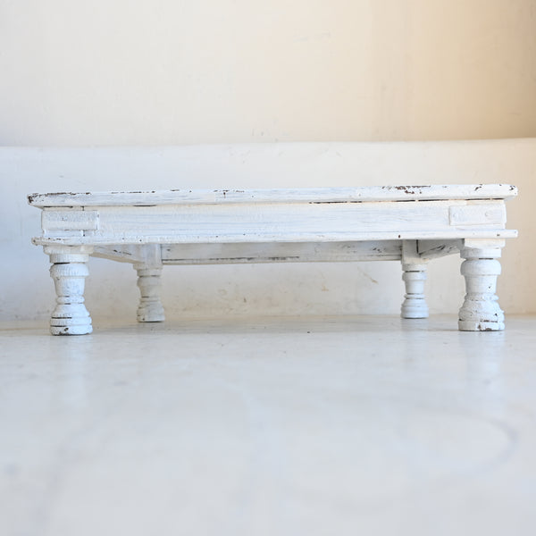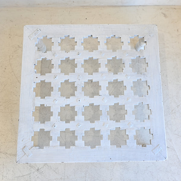 This bajot table is an original old, one of a kind. Sourced from North West India.  Hand carved in beautiful traditional jali detail, and finished in white. These bajot's are perfect picnic tables, surrounded by cushions with a glass of...