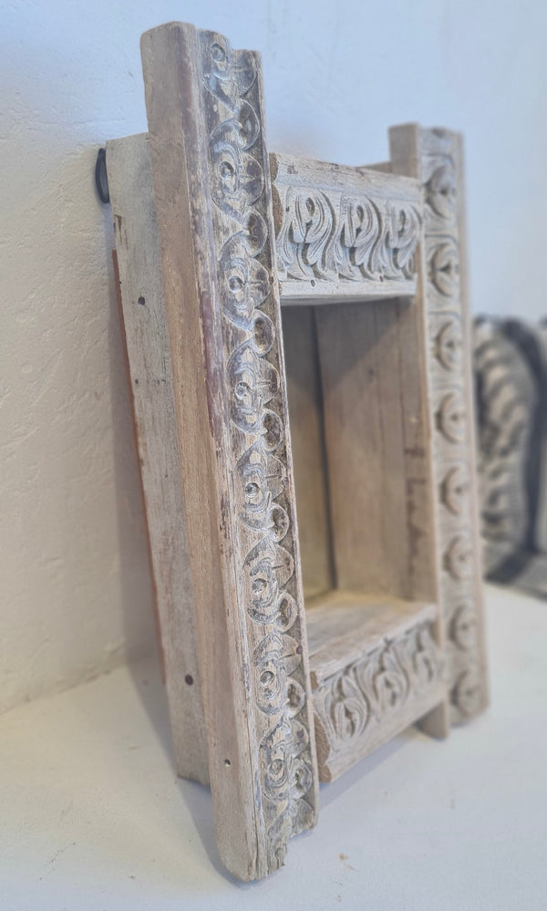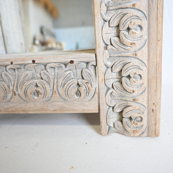 These Vintage mirrors are incredibly unique. Sourced in North West India, and made using old repurposed carved panels. they have 4 intricately carved sides, are made from teak and bleached to create a soft light weathered patina. they would make...